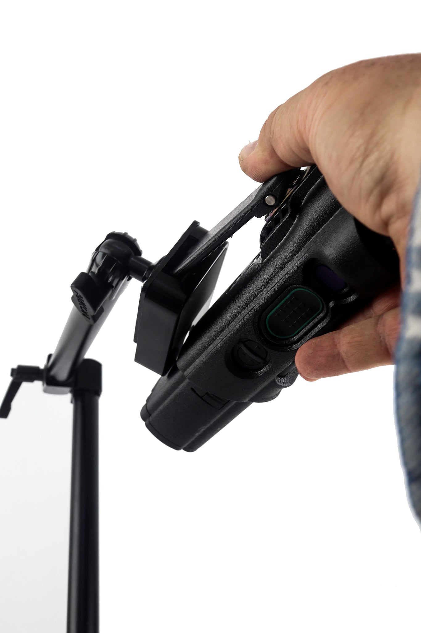This is our industrial grade Seat Bolt mount. It is 22" in length and is made with aluminum tubing. The base is a ball with a ratchet handle so you can lay the mount out of the way when you need the space.