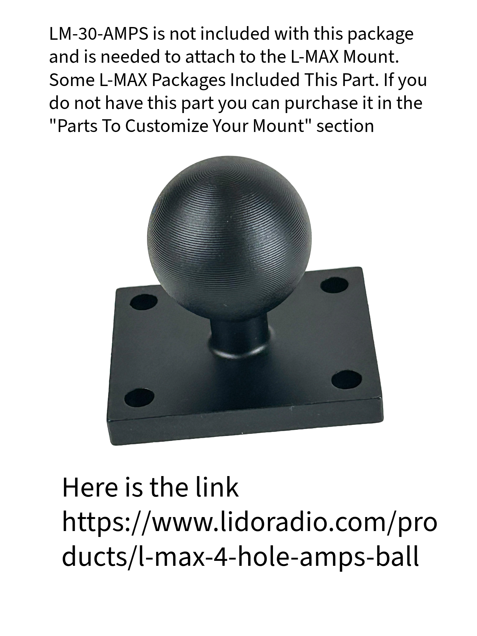 The Titan clamp uses a 38mm or 1 1/2" ball design and has a 4 hole base with a 3.75" connector and 1/4-20 stud with supporting disc. This is ideal to hold the heavy Yaesu FTX-1 and the Icom IC-705. Please note if you are using this with the L-MAX you will need the metal LM-30-AMPS. This shipped standard with some L-MAX's.